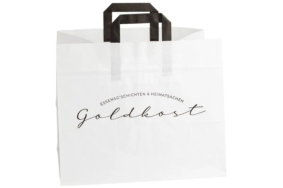 Jede Tragetasche ist ein mobiler Werbeträger. Durch professionellen Druck in deinem Corporate Design sorgst du dafür, dass dein Name bei jedem Gang durch die Stadt sichtbar ist. Ob edel minimalistisch oder bunt und auffällig, wir haben die Verpackung, die perfekt zu deinem gastronomischen Konzept passt.