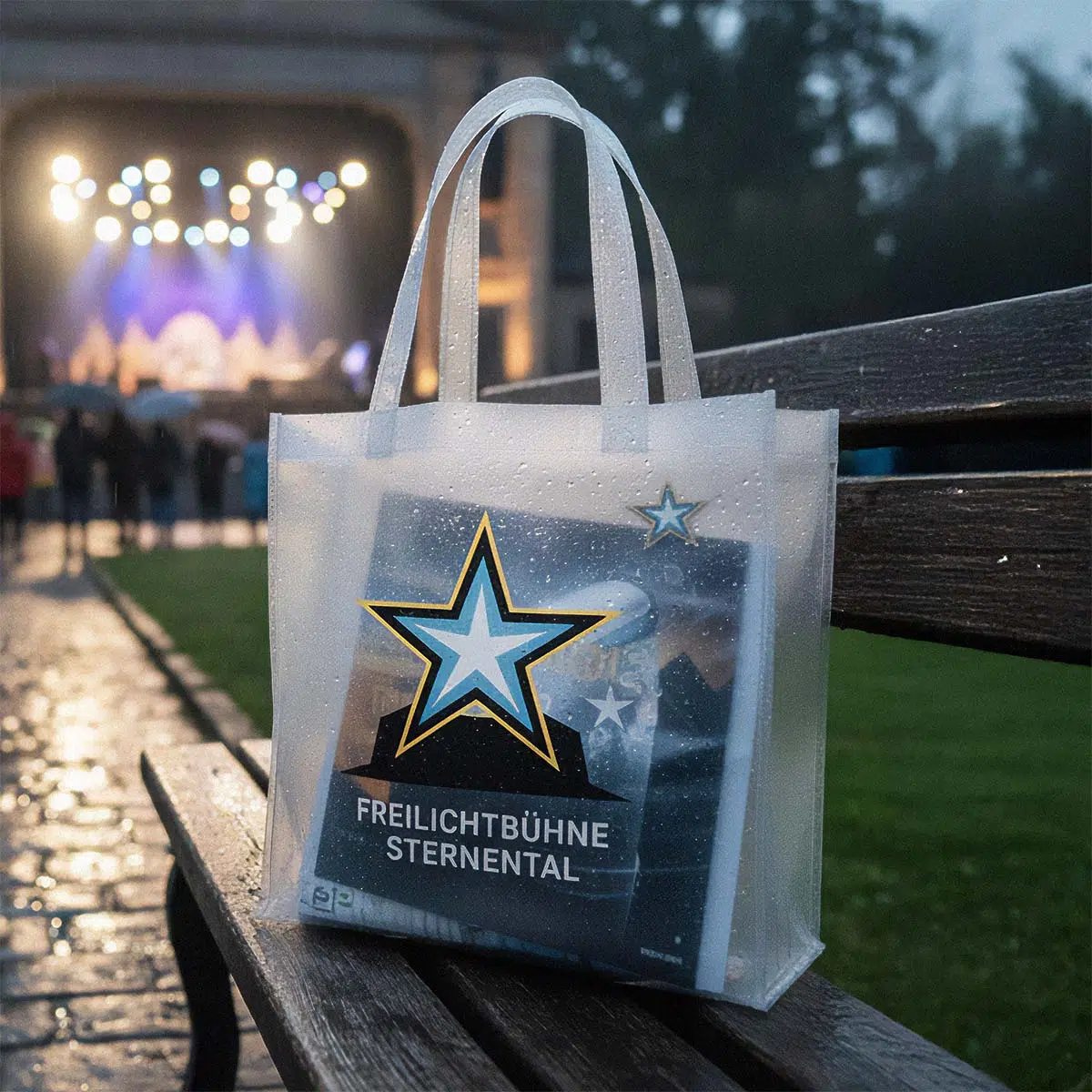 Für Outdoor-Veranstaltungen empfehlen wir beschichtete Papiertaschen oder Kunststoffvarianten, die wasserabweisend sind.